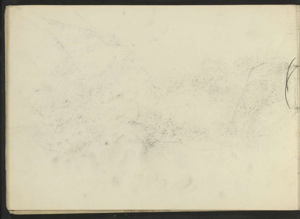 Editor: This is Willem Cornelis Rip's "Gezicht op Lent," a landscape drawing rendered in pencil and possibly watercolor on paper, sometime between 1892 and 1897. The image has a ghostly, ethereal quality; it feels very ephemeral and delicate. What strikes you about the composition and visual elements in this piece? Curator: The formal arrangement certainly invites scrutiny. Consider the starkness of the paper itself, its inherent materiality almost acting as a figure in itself. The linear perspective, however subtle, directs our gaze deep into the suggested landscape. Editor: I see what you mean about the linear perspective, almost as if the sketch invites us to step into the scene. How does the artist achieve that effect with such sparse detail? Curator: Precisely! It's the economy of line, the suggestion rather than explicit rendering, that intrigues. Notice the almost calligraphic quality of the strokes forming the implied vegetation, contrasting with the open space of the page which defines the plane. What is not drawn is as important as what is. Editor: That makes sense. The blank spaces almost create a feeling of distance and airiness. So, it's not just about the landscape depicted but the interplay of line and space? Curator: Indeed. Consider how the very texture of the paper participates. It is an objecthood laid bare. Rip seems to be as much exploring the limitations and possibilities of his chosen medium as he is depicting a location. Editor: It's fascinating how much can be gleaned from what at first seems like a simple sketch. I definitely appreciate the interplay between the artist’s touch and the inherent qualities of the materials much more now. Curator: It reveals that close attention to visual elements can offer profound insights into the artistic intentions behind any given piece.