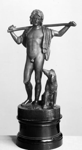 Curator: Allow me to introduce you to Giambologna’s bronze sculpture, “putti dalla cappella grimaldi in s. francesco di castelletto,” created around 1590. What strikes you first? Editor: Well, it's certainly not the angelic innocence I expected. There’s a weightiness, a grounded quality to the figure. The bronze lends it a sense of earthly materiality, a far cry from ethereal ideals. Curator: That’s perceptive. It's a portrait of childhood as real, rather than ideal. Notice how the bronze gives warmth to the cherubic form. The Renaissance was, in part, about rediscovering humanity, even in the divine. I see vulnerability. What sort of labor would be involved to work with bronze in the 16th century? Editor: Immense amounts of it, particularly hard physical labor involving the mining, transport, smelting, and casting of metals by numerous individuals: bronze casting was rarely an individual act but required entire workshops devoted to the extraction and deployment of mineral resources for the elite. Also note the delicate carving required afterwards to complete this piece! Curator: Exactly! It's interesting to consider the value ascribed to the material itself, beyond its transformation into art. A raw bronze piece suggests power and industrial capability, not spirituality. But with care it becomes "art", that which touches the soul. Editor: Right. By tracing the labor that creates this object, one understands it is much more than simply a cherubic figure rendered in classical realism; there’s complex production networks in operation, obscured perhaps through the easy classification of Giambologna as solely an "artist." Curator: That makes you consider a bit what all these systems cost. From that point of view the beauty of Renaissance art could inspire deep admiration, perhaps, or bitterness for someone involved only with material sourcing! Thanks for highlighting some of this context; what are you left with? Editor: I'm thinking about what other meanings we impose or subtract from this bronze beyond material origins. In a time defined by inequality, labor exploitation can be aestheticized as art, ultimately masking realities of human toil behind symbols of wealth. Curator: So interesting! For me I realize it's both earthy *and* divine, a perfect balance, at least momentarily, struck in the alchemic meeting of humanity and art!