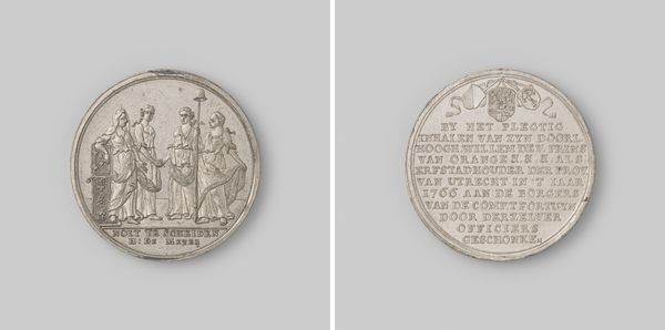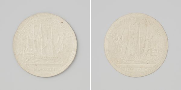 This is a cardboard print made in 1807 by Jean-Pierre Droz, commemorating the completion of the sluices at Katwijk. These sluices were a major hydraulic engineering project in the Netherlands. As such, this print highlights the public role of such monumental engineering. On one side, we see a figure, perhaps a personification of the Netherlands, celebrating this achievement. The reverse depicts the sluices themselves, emphasizing their architectural and functional significance. Made during a period of French influence in the Netherlands, this artwork likely reflects the socio-political context of the time. Hydraulic engineering was crucial for the Dutch, shaping their economy, geography, and national identity. Understanding this artwork requires exploring sources such as historical records about the project, engineering treatises, and period accounts of public celebrations. The print then becomes an artifact of cultural and institutional history, revealing the values and priorities of its time.
