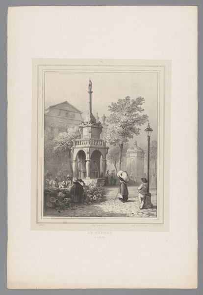 Curator: Samuel Prout’s 1832 drawing, "Kerkruïne in Sint-Omaars," invites us into a dance of light and shadow. It’s currently housed at the Rijksmuseum. What’s your initial take on it? Editor: There’s a stark contrast between the imposing architecture and the everyday figures. It feels melancholic. A beautiful ruin, but a ruin nonetheless. It's an assertion that everything is in decline, particularly church institutions. Curator: I love that. It feels like a stage set, doesn’t it? Those gothic arches are dramatic. Prout, with his ink and pencil, captured such texture in the crumbling stone. There's a certain romantic allure here, in the crumbling majesty of time. Editor: Absolutely. The picturesque quality is unmistakable. Prout employs a technique of architectural draftsmanship that creates a layered narrative, subtly probing societal power dynamics embedded within historical and religious structures. How much power has the church held over our lives for centuries, after all? Curator: Power and fragility, existing together. The Romantic period artists were keen to show emotional responses to these sorts of images, I can sense the slight wistfulness and a celebration of gothic architecture and historical reflection. How does seeing it within the context of Romanticism impact how you perceive it? Editor: It makes me think about whose stories are prioritized within these ruins. Are we reflecting critically on how such structures became embedded in the landscape? Prout romanticizes what remains—what of all the marginalized identities who never profited from this religious edifice in the first place? Curator: That’s such a powerful reading. I like how it can hold so many perspectives simultaneously: it really embodies the power of a historical moment that reverberates still. Editor: Exactly. It calls on us to actively engage with art as a point of social reflection, a powerful, layered reminder of who and what shapes our world.
