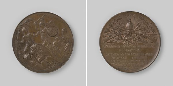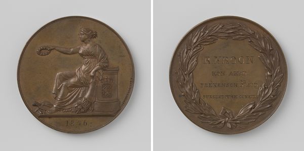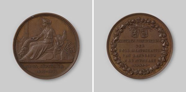 This bronze medal was designed by Ludwig Jünger in 1896 to commemorate the 25th anniversary of a charitable organization in Amsterdam. Cast bronze is an interesting material here. On the one hand, it belongs to a long tradition of state commemoration. On the other hand, it is very common, associated with everyday objects like plumbing fittings. Here, the die-stamping process would have been used to create a sharp impression of the design onto the medal. On one side, an allegorical figure of charity crowns a kneeling figure. The reverse is inscribed with the organization's name, surrounded by floral motifs. Although this was a commemorative artwork, made using relatively mechanical means, it is inextricably linked with the social issues of labor, wealth, and power. It reminds us of the material conditions that allow for acts of charity, and the systems of production that create both wealth and poverty. By understanding these contexts, we can appreciate the medal not just as a symbol of philanthropy but also as a reflection of broader social dynamics.
