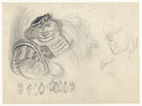 This is a print called Figurkomposition by J.A. Jerichau II, made sometime between 1890 and 1916. It has this scratchy, wiry energy. It’s the kind of piece where you can really see the artist working through their ideas, feeling their way through the process. The texture of the print is really something. You can see how the lines are etched into the plate, and the ink sits on the surface of the paper. Look at the figure on the right, their head looks like it has been scribbled over and over. You can almost feel the artist's hand moving, trying to capture the form. The way the lines vary in thickness and darkness creates a sense of depth and shadow, even though it's all in black and white. There's something about the raw, unfinished quality of this print that reminds me of Paula Modersohn-Becker's early etchings. Both artists seem interested in capturing a sense of immediacy and directness in their work, embracing ambiguity.