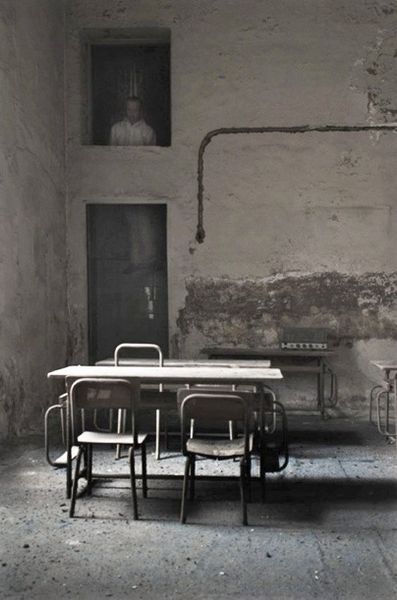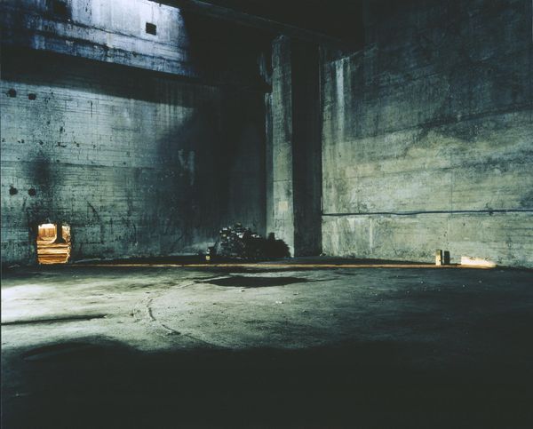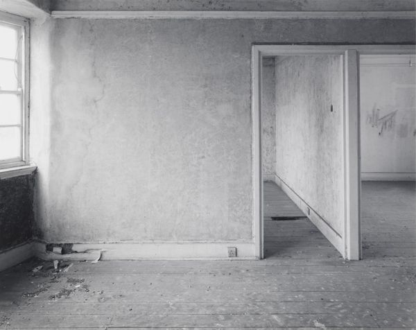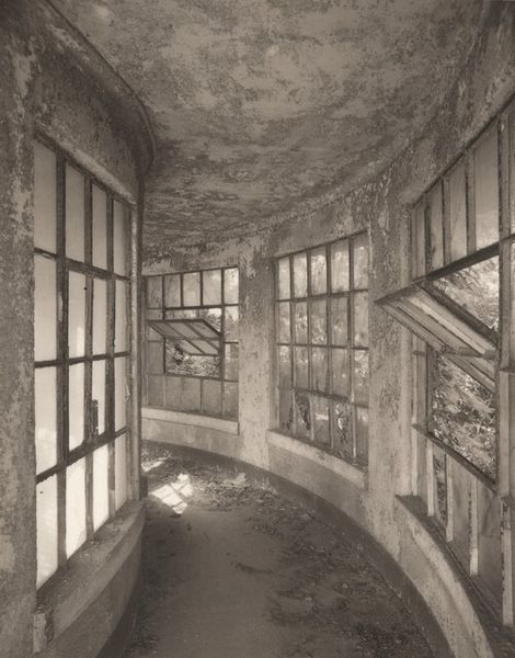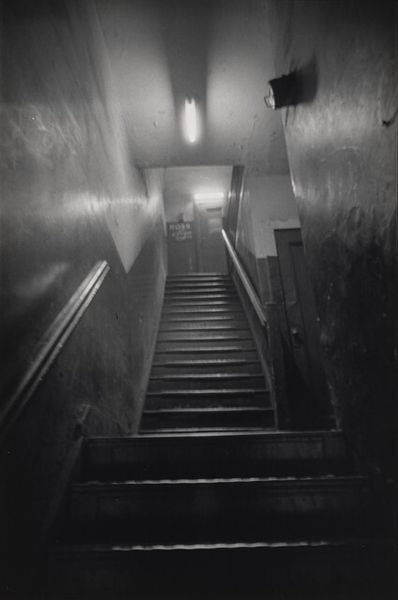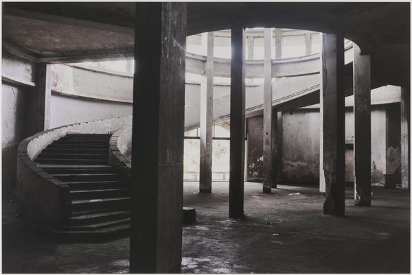 Curator: I'm immediately struck by the heavy feeling of confinement in this photograph. It's so stark. Editor: Indeed. The work we're considering is a photograph titled "Baby Hippopotamus, Gelsenkirchen, Germany." It was taken in 1989 by Volker Seding. Curator: Gelsenkirchen. So, a zoo in Germany then, I assume. You can practically smell the damp concrete through the picture. It feels incredibly lonely and even brutal, really. Look at the bars – they dominate the whole composition. It completely obscures the hippo! Editor: That compositional structure—the bars, the textures of the walls—serves a very precise function. The rigorous verticality of the bars create a foreground plane that distances us. Note also the carefully calibrated tonal contrasts within the photograph. The muted color palette further enhances this feeling. The decay is beautiful here. Curator: The bars create an interesting framing effect, definitely, and the poor thing barely has any room. It makes you question what “public art” really means, when we turn nature into an exhibit. But at the same time, it's beautiful in a strange, heartbreaking way. Do you get what I mean? Editor: I understand. The bars create an immediate boundary but also introduce the central question regarding our relationship with the otherness. We are seeing nature on display, and yet it doesn’t make for very pretty art in that very notion. It asks us how we define that interaction and whether those boundaries should, in fact, exist at all. Curator: It’s heavy, isn’t it? The photo does speak of boundaries and their repercussions, echoing how often such divides feel so... immovable. It really does evoke something almost viscerally unsettling. Editor: Absolutely. "Baby Hippopotamus, Gelsenkirchen, Germany," while appearing simple on the surface, offers a very layered narrative that will make you consider humanity's impact, whether visible or subtle.