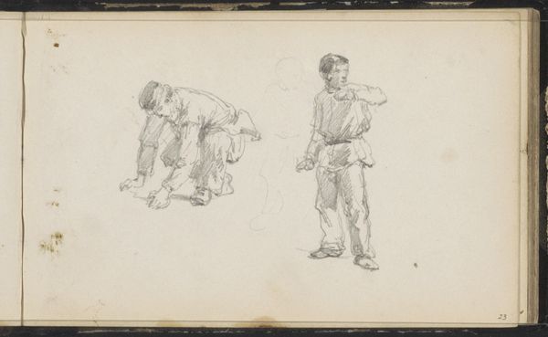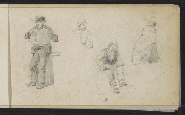 This is a pencil drawing by Cornelis Springer, titled "Two Figures," which resides in the Rijksmuseum collection. Here we see two figures in repose. Note the figure seated on the ground. The act of sitting, of taking rest upon the earth, carries a lineage stretching back to antiquity. In ancient Egyptian art, figures seated upon the ground often signified a connection to the earth. Consider the symbolic weight this posture bears across cultures. It can represent humility, contemplation, or even resistance. The seemingly simple act of sitting contains within it a complex interplay of cultural and psychological meanings. It can be a powerful symbol of humanity's relationship with the natural world, the gesture charged with cultural memory. It resonates in our subconscious, triggering emotions and associations linked to rest, reflection, and groundedness. This archetypal posture continues its cyclical journey, resurfacing through history.