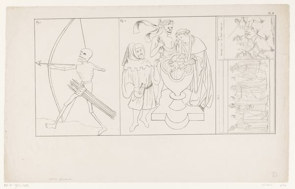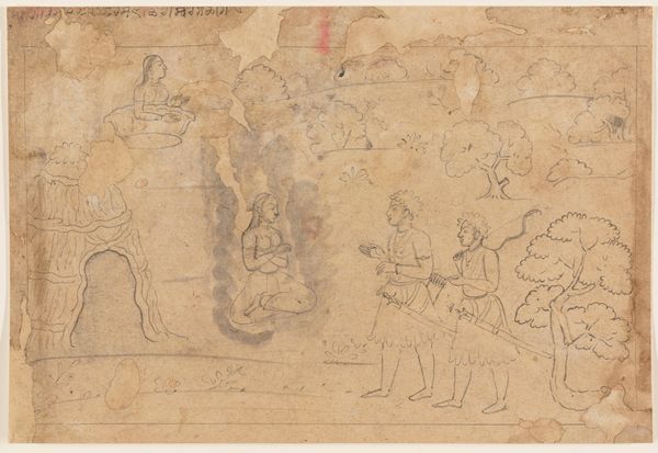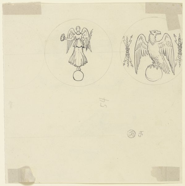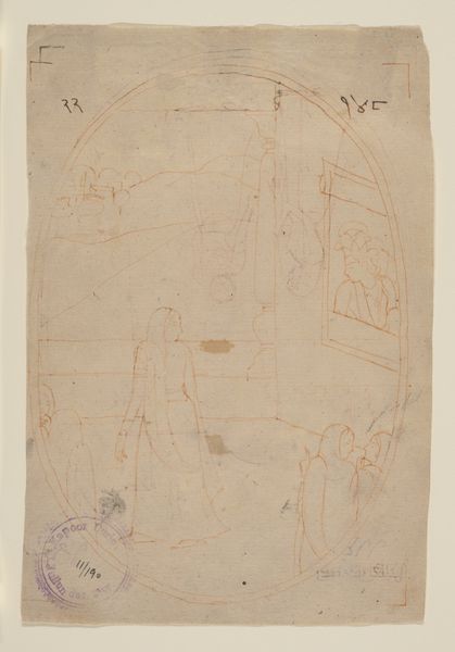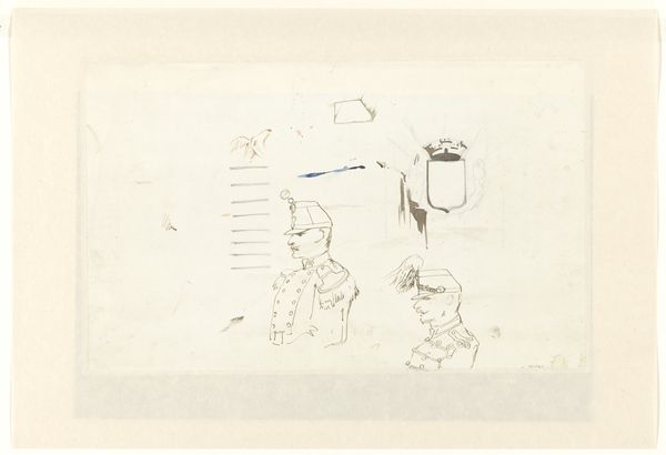 Editor: This is "Deel van een ornament met zittende heiligen," or "Part of an ornament with seated saints," a pen and ink drawing on paper by Theo Nieuwenhuis, dating from 1876 to 1951. The loose, almost hurried lines give it a casual feel, but the subject seems quite serious. What do you see in this piece, and how do you interpret its cultural significance? Curator: What strikes me immediately is the tension between the presumed authority of religious iconography and the artist’s apparent freedom in its representation. Given the time period, and looking at this sketch with an activist’s eye, it seems Nieuwenhuis is challenging the rigid, often oppressive structures of religious power. How do we reconcile this very personal, almost playful style, with such historically charged subjects? Editor: So, you’re saying the sketch-like quality itself becomes a form of critique? That the informality diminishes the power of the religious figures depicted? Curator: Precisely. It’s about disrupting the expected reverence. Think about how traditional religious art often reinforces hierarchies. Nieuwenhuis seems to be subtly undermining that, perhaps offering a glimpse into a more democratic or personally resonant spirituality. This was a period of significant social upheaval; does the subversion of the traditional, the religious, reflect the broader shift in society? Editor: That makes so much sense. I hadn't considered the connection to broader social changes at the time. It makes the work seem much more… daring. Curator: Art doesn't exist in a vacuum, and this drawing encourages us to reflect on the socio-political narratives present even in the most simple-seeming artworks. What was previously an innocent drawing reveals complex attitudes towards power and belief, inviting us to examine our own assumptions too. Editor: I’ll definitely be thinking differently about sketches from now on. Thanks!