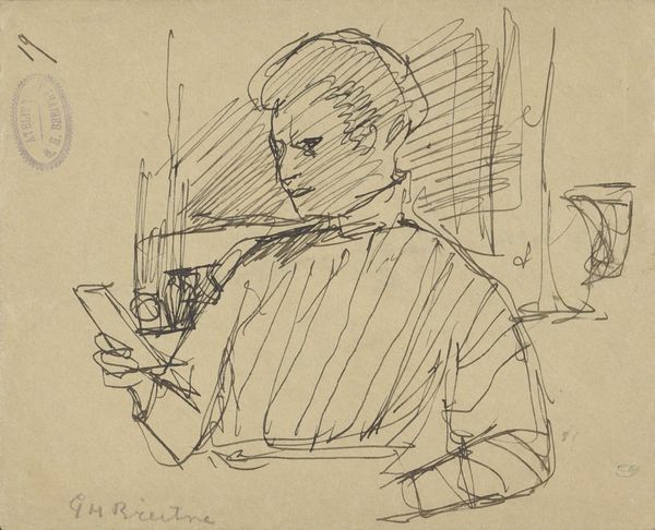 Isaac Israels sketched "Zittende man" with a graphite pencil, capturing a figure in quiet contemplation. The composition is immediately striking with its strong diagonal lines and contrast between the dark, densely shaded areas, and the open, lighter spaces. Observe how Israels uses line to delineate form, yet also allows it to dissolve into abstraction. The sitter's jacket, for instance, is rendered with bold strokes, almost standing alone as an independent shape on the page. The sketch plays with a balance between representation and non-representation, challenging our conventional understanding of portraiture. The overall effect is one of transience, as if the artist has captured a fleeting moment. This work invites us to consider the sketch as a site where the boundaries between the figure and ground, intention and accident, are constantly negotiated.