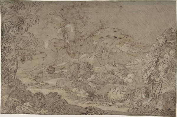 Curator: At first glance, this feels like tumbling down a hill covered in… everything! Chaotic and exciting, somehow. Editor: It's "La Chasse au Tigre", or "The Tiger Chase", an engraving, etching, and drawing attributed to Jean Jacques Flipart, though the dating on this one is rather broad, sometime between 1734 and 1782. It now resides here at The Met. What initially grabs you about its apparent chaos? Curator: The texture. The layers! All this frantic energy is carved into lines. A tiger hunt sounds exhilarating and terrible, and the artist translates that right into the line work. But is this *actually* a tiger chase? Because I’m getting a theatre backdrop vibe too... Editor: That "backdrop" feeling you pick up on is no accident, really. Images like these, mass produced via engraving and etching, shaped popular understandings and fantasies of the "exotic." Think of this as an early form of mass media shaping opinions about colonial encounters. Tiger hunts themselves became elaborate public spectacles, emphasizing European dominance. Curator: Dominance—of course. So, even this rather small piece becomes a reflection of large sociopolitical trends? That changes things. It becomes more sinister somehow, and much less “tumbling down a hill”. Still… technically masterful. I mean, just *look* at that palm tree teetering off the cliff. The guy knew what he was doing with that needle. Editor: Absolutely. Flipart’s attention to detail and command of the etching and engraving processes allowed for the wide dissemination of this image. Consider how the Baroque style’s inherent drama gets translated into this black-and-white print. And you start to understand just how this artwork can tell us stories about class, power, and representation during the 18th century. Curator: I love that interplay, where skilled technique gets yoked to, well, propaganda. It leaves me with the shivers, really, to think something so lovely can also be, in a way, complicit. What an amazing tightrope walk for art: existing in those contradictions. Editor: Indeed. “La Chasse au Tigre” leaves us with much to consider regarding the public life of images.
