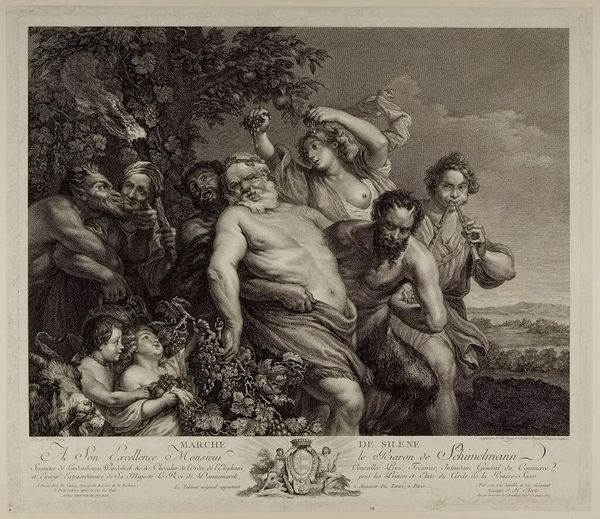 Curator: Oh, this is Jean Marie Leroux's "Saint Jerome," a work where the saint is portrayed in a moment of deep reflection. Editor: My first impression is the darkness, the way it cocoons Jerome. He seems utterly alone with his thoughts, but there's also a sense of calm. Curator: Absolutely. The skull, of course, is a classic memento mori, reminding us of mortality, and the crucifix he holds is a symbol of faith. It’s a powerful contrast. Editor: The lion, too, that's fascinating! Jerome supposedly tamed a lion in the desert, so it's a symbol of his strength and control over primal instincts. It’s a lot, isn’t it? Curator: It is. Jerome's life was a journey of translation, of transforming ancient texts into something new. So, the imagery is a kind of visual translation of that spiritual and intellectual journey. Editor: Yes, there’s such intense solitude, making it a surprisingly intimate study of faith and mortality. Curator: Indeed, it seems Leroux wasn't simply depicting a saint, but rather the deeply human struggle to understand one's place in the world.