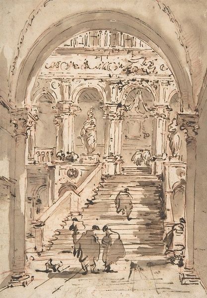 This drawing, whose artist and date remain unknown, is rendered in pen and brown wash. It depicts a scene of sacrifice within a grand, classical building. The image creates meaning through its visual codes. The architecture, with its imposing columns and symmetrical design, evokes the power and authority of ancient civilizations. The act of sacrifice, a ritual deeply embedded in many cultures, hints at the complex relationship between humanity and the divine, or perhaps between the ruled and their rulers. It’s impossible to say whether the original artist was conservative or progressive, or whether this work was created in support of existing institutions, or in critique of them. The interpretation of art, of course, is contingent on social and institutional context. To understand this work better, historians would consult a wide range of resources, from archaeological reports, to studies of religious practices, to analyses of the patronage systems that supported artistic production.
