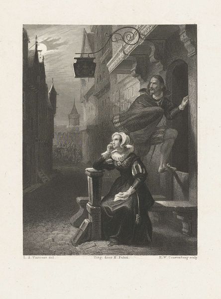 Curator: The artwork before us is entitled "Interior of a Church," rendered by Alphonse Legros using, it seems, a light pencil technique. It has a hushed quality to it. Editor: Absolutely. The density of the pencil strokes is masterfully controlled. It creates this remarkable sense of spatial depth despite the relatively restricted tonal range. It feels immense, despite likely being a small print. Curator: Yes, look how Legros deploys the church interior not merely as architecture, but as a stage for human dramas, perhaps of devotion, doubt, or simply the rituals of daily life. Do the figures carry established symbolic significance? Editor: Potentially. Observe the placement of the figures at varying heights upon the steps. Their postures convey individual contemplation amidst communal belief. See the use of perspective pulling you towards an unseen area in the distance, like in a mathematical rendering. The artist expertly wields visual grammar. Curator: The veiled woman to the side evokes images of figures such as Mary at the temple; even without overtly religious identifiers, her image invites associations tied to loss, maybe anticipation? It adds an intensely emotional, if melancholic, aspect to the visual storytelling at work. Editor: I concur. The artist's sensitivity toward light and shadow lends an ethereal air. He highlights not merely the literal physical space but, metaphorically, inner psychic landscapes. We can almost feel the cold stone, hear the distant echoes. Curator: A tangible resonance—almost like cultural memory expressed in graphic form, resonating with those places where one comes for renewal, a place to face one’s inner reckoning. Editor: Indeed, the formal arrangement subtly dictates how the content unfolds itself to us. Compelling. Curator: This quiet profundity shows Legros captured a delicate tension between structure and spirit that extends past formal construction alone. Editor: A fine note to depart upon – Legros’ “Interior of a Church” reminds one to consider formal language that underscores humanistic themes.