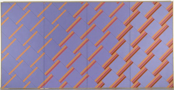 Editor: Here we have Jeffrey Steele's "Rational Concepts," a geometric abstraction with grey, black, and red lines creating an almost woven pattern. It strikes me as so calculated, yet strangely dynamic. What do you make of it? Curator: It’s a fascinating interplay of order and implied chaos, isn’t it? The lines, so precise, suggest a system, but the way they intersect creates visual disruptions, a sort of organized rebellion. Does it feel cold to you, or is there a pulse? Editor: Now that you mention it, I feel a pulse, like it's a city map viewed from a strange angle. Curator: Exactly! It is both rigid and alive with possibilities. Editor: I see it now, thanks!