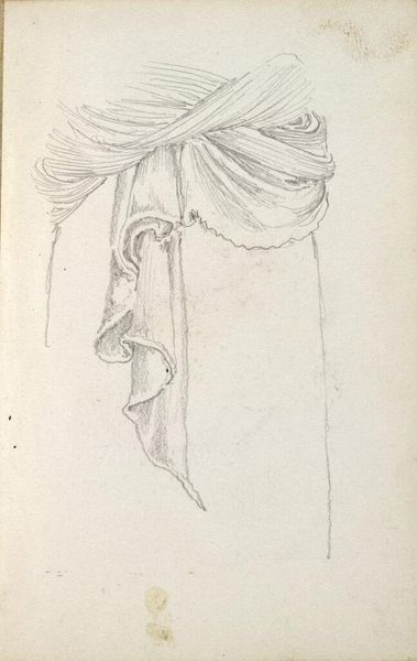 Curator: Before us is a drawing by Luc-Olivier Merson, titled "Study of drapery for 'sacrifice to the Fatherland'", executed in pencil. Editor: The composition immediately strikes me. There's an almost sculptural quality in the way the light and shadow define these folds. Curator: Precisely. Note how Merson employs a delicate cross-hatching technique to build up tone and volume. This isn't just fabric; it's a carefully constructed system of lines, rendered in gradients to simulate depth. The interplay between positive and negative space also contributes to the form’s visual weight. Editor: Drapery, in art, often symbolizes status, morality, or emotional states. Given that this is a study for "sacrifice to the Fatherland," it seems reasonable to interpret this billowing fabric as representative of something beyond the material itself. It evokes a sense of weighty solemnity, and perhaps grief. Curator: A convincing point. While your insight explores broader meanings of this detail, I also observe the use of line as a fundamental structural element. The density and direction are strategic—dictating how light flows across the fabric, suggesting its texture and mass. Merson achieves remarkable realism using very simple means, demonstrating a mastery of observation. Editor: Indeed, the symbolic resonance is undeniable, especially knowing its context within the larger painting. The folds almost feel like a collapsing societal structure, weighty and burdensome. Consider the psychology of clothing too – in a moment of sacrifice, is it a covering or a concealment? Curator: Perhaps both. The drawing, despite its simple subject, engages multiple perspectives. Ultimately, the aesthetic effect derives not from symbolism alone, but from the skilled manipulation of the medium itself: from line, shadow, and their material expression. Editor: Well, now I see both the tangible craft and intangible essence blending in this compelling study. A fruitful way to approach any work.