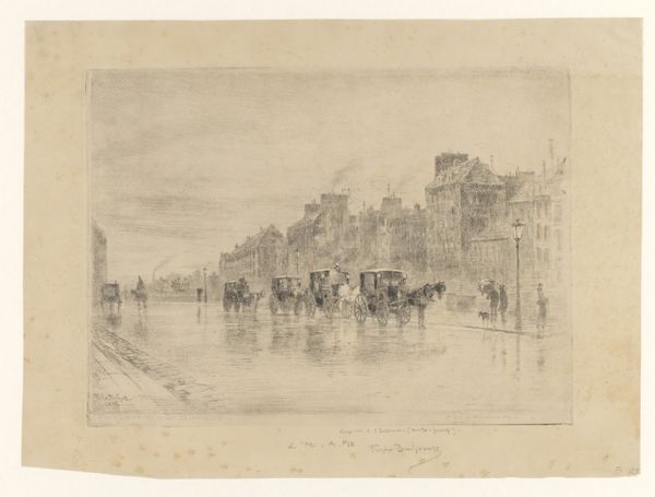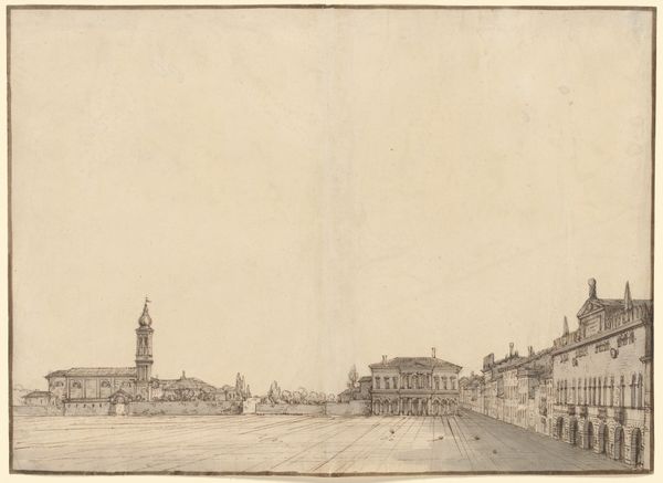 Curator: This is Bernardo Bellotto's drawing, "The Grand Canal, with the Fabbriche Nuove on the Left and Campanile of Santi Apostoli on the Right," created sometime between 1733 and 1740. It’s rendered in pencil. Editor: It’s evocative. A wistful serenity, almost melancholic, settles over the scene, emphasized by the monochrome palette and the deliberate rendering of form. I want to know what kind of paper was used; I'm interested in the feel of the drawing in my hands. Curator: Indeed, Bellotto's skill captures the essence of Venice. He wasn't merely depicting architecture, but rather the atmosphere, the symbolic weight of this watery city. Those architectural forms become enduring cultural symbols themselves. Editor: The means of production, however, fascinate me more. The pencil, its graphite core mined and shaped, the labor involved in creating this precise scene… did Bellotto sketch this on site? What were the working conditions? Curator: Venetian painting of this era often captured idealized cityscapes for the burgeoning tourist trade, symbolizing status and worldly knowledge, fitting perfectly into the grand tour narrative of wealthy Europeans. The canal, as a symbol, speaks to flow and connectivity, a center of commerce and power. Editor: It is commerce we must look at; the rise of graphite pencils and paper production meant this sort of picturesque view became accessible to a new segment of the middle class, didn't it? Souvenirs for the nouveau riche? How did the availability of such materials affect the workshops making similar imagery via paint? Curator: Absolutely. But consider the enduring image of Venice, that very light shimmering off the water, distilled in this rendering… Bellotto preserves an idea of Venice through this pencil sketch, an ethereal and yet grounded sense of place. Editor: Grounded in trade and material reality, no less! Thinking of the industrial processes informing this image allows us to re-situate high art like baroque into daily lives and cultural consumption practices that may be too quickly overlooked. Curator: Perhaps a reminder that the eternal city is also firmly rooted in earthly concerns, the symbol entwined with the material conditions of its making. Editor: I find myself newly intrigued by it! I had been overly focused on labor itself!