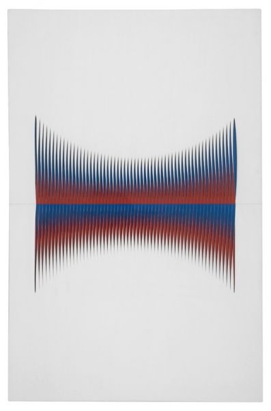 This is Gunter Fruhtrunk's "Étude No. 3 - Champs dynamique", and with its sharp lines, it's like a visual punch to the gut. I’m drawn to the way Fruhtrunk plays with geometry, the orange and blue bars creating a rhythm that’s both ordered and disrupted. Look at how the diagonals slice through the composition, adding a layer of visual noise. It's like a glitch in the matrix, right? The surface is so flat, so precise. You can almost feel the crisp edges of those painted lines. There’s a real physicality to the way these colors butt up against each other, creating a tension. And while it's tempting to see a system at play, there's also a sense of playful improvisation here. Fruhtrunk reminds me a bit of Bridget Riley, but with a harder edge. They both make you question what you see, but through very different vocabularies.