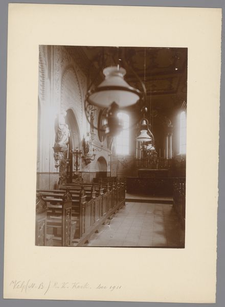 This is a photograph of the Nederlands Hervormde Kerk in De Rijp, North Holland, made by Leonard Vlaanderen, and it captures a moment frozen in time. The sepia tones give it such a dreamy, almost unreal quality. Look how the light filters through the windows, casting soft shadows that dance across the rows of empty chairs. There is a sense of quiet contemplation, a moment suspended between sermons. The chandeliers hang like ornate cages, their delicate forms juxtaposed against the sturdy architecture. My eye is drawn to the way the light pools on the floor, creating a sense of depth and mystery. It reminds me of some of Atget’s architectural studies, where he captured the soul of a building through its details. It’s like Vlaanderen is inviting us to pause, to breathe in the silence and feel the weight of history in this sacred space. It shows how art is a conversation across time, a way of seeing and feeling that connects us to the past.