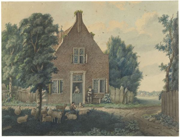 This watercolor and pen drawing, titled "Hoofdkwartier van Wellington", depicts Wellington's headquarters and was created by an anonymous artist. The artwork offers a glimpse into the world of early 19th-century military power. Wellington, as a figure of authority, is subtly represented through the location of his headquarters. The building itself, framed by nature, seems to be a place of strategic importance. The two figures in the foreground add a layer of narrative. One stands appearing somewhat burdened; the other seated, perhaps awaiting orders or news. Without a known artist, the artwork invites questions about the artist's own position in relation to power and the military. The artist's identity, whether aligned with or distanced from Wellington's cause, remains a mystery. This image serves as a reminder that the grand narratives of history are often constructed from countless individual perspectives, many of which remain unseen and unheard.