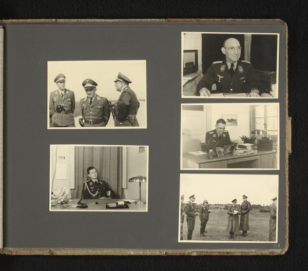 This photo titled 'Collega's van Isabel tijdens haar periode bij KLM, 1954, Israël' was taken in 1954 in Israel by an anonymous photographer. The gelatin silver prints and paperboard of the album page, create a kind of ready made grid. It reminds me that artmaking is always a process of selection and arrangement. The black and white images of the colleagues is a kind of found painting. The slightly wonky angles of the photographs, and the way some of them overlap, gives the album page a dynamic energy, like a collage. I love the contrast between the formality of the subjects and the playful arrangement on the page, it reminds me of artists like Gerhard Richter, or even the diaristic impulses of Nan Goldin. Each photo is a little world in itself, telling a story about work and leisure. Look at the bottom left image, the man relaxing with his shirt off on a sunny day, and the guy in the bottom right working hard at his typewriter! This piece suggests that art is about embracing imperfection and finding beauty in the everyday.