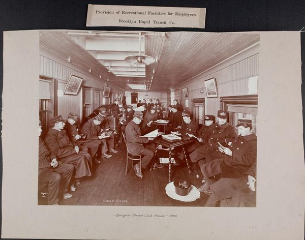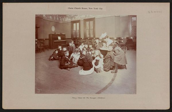 Curator: This photograph by Percy C. Byron, titled "Boys' Sloyd Class 1905," captures a woodworking class at the Christ Church House in New York City. Editor: It's fascinating, almost sepia-toned with this air of focused industry. It feels so earnest, but also a little sad, like childhood caught in amber. Curator: "Sloyd" refers to a system of manual training that emphasized useful skills. This image documents the social settlements movement, focused on providing educational opportunities to urban youth. Look at the boys' matching aprons! Editor: The aprons signal a kind of uniformity, right? A collective identity formed through labor. I wonder if they felt empowered or just... worked. Curator: The materiality of the image itself—the photographic paper, the printing process—tells a story of mass production, yet also individual experience. These classes would have been seen as a means to social mobility, teaching valuable skills. Editor: I can almost smell the sawdust, the wood shavings. So many layers here, from the boys’ hands to the final product. It’s like we're looking at the intersection of intention and outcome. Curator: Exactly. It's a potent reminder that the objects we create are embedded with the labor and aspirations of those who make them. Editor: And a reminder, too, that art often emerges from unexpected places, like a church basement where boys learn to build something lasting.