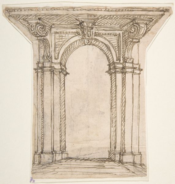 Curator: This is a study entitled "Hoekstuk van een plafond met acanthusbladeren en guirlandes," or "Corner Piece of a Ceiling with Acanthus Leaves and Garlands." The drawing, likely preparatory for a larger decorative scheme, is attributed to Mattheus Terwesten and dates from the late 17th to mid 18th century. Editor: My initial impression is that it feels incredibly opulent, but almost ghostly. The monochromatic wash, the skeletal quality of the drawing – it’s grandeur tempered by a strange sense of impermanence. Curator: Precisely. The Baroque loved this play of grandeur and the ephemeral. Terwesten’s drawing showcases the intricate designs favoured in academic art of the period – consider how these corner pieces served to enhance interiors, reflecting wealth and power. These elaborate ceiling decorations contributed to constructing elaborate interior spaces that were often used to project authority and impress visitors. Editor: It's interesting you mention authority. To me, that level of ornate decoration can feel suffocating, a visual assault on the senses that reinforces a strict social hierarchy. Who were these spaces really for, and who was excluded? These decorative styles became cultural and economic symbols associated with power and prestige during colonialism. Curator: The commission of such pieces was undeniably linked to wealthy patrons and the political climate of the time. While the Baroque emphasized drama and emotional impact through art, it also firmly upheld existing societal structures. These artistic styles influenced global empires through architecture and decor reinforcing Europe's status and ideologies. Editor: Absolutely, art, even decorative art, serves a purpose beyond aesthetics. Thinking about who designs these opulent spaces, who commissions them, and whose labor allows their creation becomes crucial to analyzing art history from broader class, race, and gender perspectives. Curator: Examining works like this also reminds us that art history isn't just about identifying masters or movements. It's about understanding the complex web of factors—social, economic, and political—that shape the art we see and experience, allowing for critical reflection. Editor: And reflecting on how these histories continue to shape our present and future artistic creations and conversations. Art exists in an ongoing dialogue, constantly reframed through the lens of contemporary social consciousness.