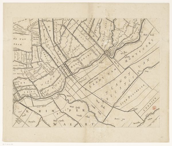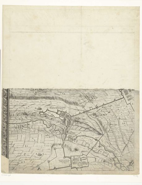 Curator: This drawing, “Slag bij Steenkerke, 1692,” from 1726, appears to be an anonymous print depicting the Battle of Steenkerke. It’s a bird’s-eye view created with ink. Editor: The image is quite detailed; it almost feels like looking at an early version of a military map. How do you interpret this work beyond its representational purpose? Curator: It’s interesting you see it as a military map. Think about who would commission or consume an image like this in 1726. This isn't neutral cartography. This print commemorates a battle, embedding it in a particular narrative. How might the choices in representing the landscape, or troop formations, subtly reinforce a specific political perspective or even attempt to sway public opinion? Editor: That makes sense. So, the act of selecting what to include, even in a seemingly objective rendering, makes a statement? Curator: Precisely! Consider the social and political climate of the time. Who benefited from controlling the narrative around this battle? Understanding the power dynamics informs our reading of the piece. The 'anonymous' attribution is interesting here too, suggesting possibly that the maker was not wanting the spotlight, but acting in conjunction with a bigger agenda. What do you think that agenda could have been? Editor: That’s a fascinating way to look at it. I never considered the role of “anonymous” in shaping that kind of perspective or what impact that would have in society at that time. Thanks for opening my eyes. Curator: Indeed. Art is so often about the unseen forces shaping what we see, isn't it?