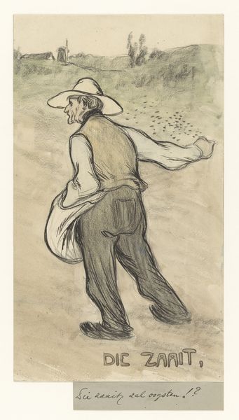 This drawing of a skater with a hat was made by Vincent van der Vinne van Lee using ink on paper. The controlled lines and minimal shading describe the scene economically. The artist focuses on capturing the figure's movement as he glides across the ice. It’s interesting to consider the relative effort required to make this image. Paper was becoming increasingly industrialized in the 19th century, and though drawing is a relatively immediate medium, it still takes time and skill to control ink in this way. The briskness of the line and the quotidian subject matter make it feel accessible rather than academic. Van der Vinne van Lee was trained in the traditions of fine art, but the directness of this drawing brings it closer to the everyday world. Ultimately, attending to both the artist’s skill, and the social context, enriches our understanding of art history.