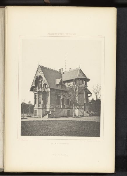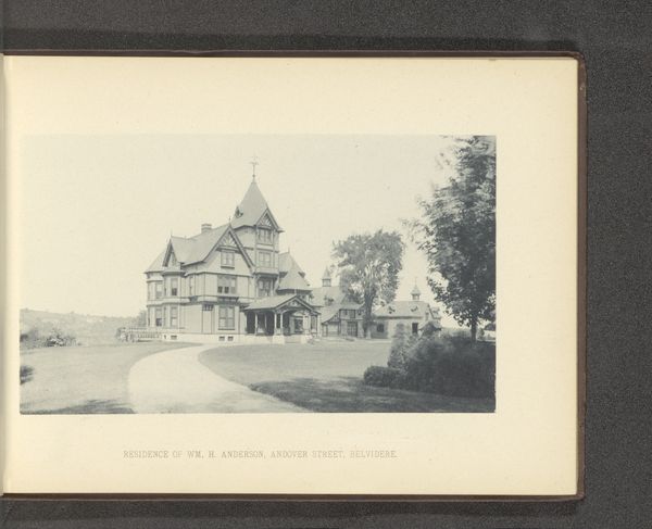 Curator: Today we’re looking at a print, likely a photograph on paper, titled "Gezicht op het huis van George Gill Green in Woodbury," created before 1889 by an anonymous artist. Editor: My initial impression is of imposing wealth and a certain, perhaps intended, distance. The tonal range is quite limited, creating a somewhat somber mood despite the bright daylight setting. Curator: Indeed. Let’s consider the composition. The grand house is centrally located, dominating the frame, while the grounds extend smoothly outward to emphasize its stately facade. The columns lead our eye deeper, past the shadows, to an implied interior world. Editor: I read the image through a lens of class and power dynamics. The sheer size of the residence, its meticulous landscaping—all these signal privilege, specifically that of George Gill Green, who profited, I must add, from patent medicines. This contrasts sharply with the living conditions of many at that time. Curator: The photograph adheres to elements of Pictorialism with its soft focus and artistic interpretation of realism, a clear effort to go beyond mere documentation. The texture, tone, and balance are exquisitely controlled, don't you think? Editor: Agreed. Pictorialism allowed for the staging of idyllic grandeur, softening the edges of reality in line with a particular aspirational vision. Think about who had the access and capital to pursue this medium. How might their biases shape these depictions? It’s also worth considering how site-specific this is and why someone found it worthwhile to create. Curator: It’s undeniably compelling how the architectural features - those elaborate arches and decorative elements - display form and order in conjunction with organic, manicured space. I observe geometry subtly offset by landscaping intended to please the beholder's eye and frame the structure. Editor: Ultimately, I observe a relic. Its composition intends to solidify a place, and therefore a person’s position within a social structure, to suggest not just status but permanence. It evokes both visual intrigue and a challenge for what constitutes beauty and what systems of power lie beneath this type of artistic rendering. Curator: Quite a contrast in how we see this, wouldn't you agree? Still, hopefully our divergent insights can reveal something deeper than meets the casual observer's eye. Editor: Precisely. Even opposing views contribute to a richer, more nuanced understanding of the forces and themes embedded within this photograph.