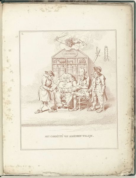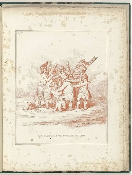This image, made in 1795 by an anonymous artist, depicts the Comité van de Vivres en Noodwendigheden, or the Committee of Provisions and Necessities. The committee was established in the Dutch Republic amidst the political and economic turmoil of the late 18th century. The image offers insights into the social conditions that shaped the political landscape of the time. The figures in the image are rendered with a caricatured style, which may have been used to critique the committee or its members. The details of their clothing and expressions can tell us about the social classes and attitudes prevalent in Dutch society at the time. Understanding the art of this period requires looking into sources, like pamphlets, newspapers, and archival records, that shed light on the debates surrounding the role of the Committee and its impact on Dutch society.