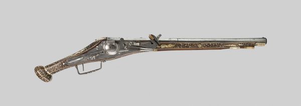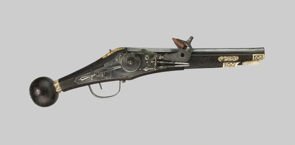 Curator: Here at the Rijksmuseum we have an early 18th-century flintlock pistol by P. Boudson, crafted around 1705 to 1710. Made from wood and metal, it exemplifies the Baroque aesthetic even in a functional object. What's your initial reaction? Editor: Well, apart from the obvious implications, the overwhelming sensation is elegance. The sinuous curves, the polished sheen of the metal...it almost belies its violent purpose. The craftsmanship speaks volumes, it projects confidence and control. Curator: Precisely! It embodies the Baroque love of ornamentation and the desire to elevate everyday objects into works of art. Consider the stock of the pistol – the carved wooden handle isn't merely functional; it's an opportunity for artistic expression. Its mere form suggests cultural continuity from antiquity. Editor: I see how the maker integrated complex aesthetic patterns into functional space. Notice the engraved floral patterns? How might the cultural memory surrounding flower motifs influence perceptions of status, control, even beauty in this otherwise weapon? Curator: The Baroque period thrived on such visual vocabulary, especially so here in this particular cultural sphere. Owning such a piece communicated more than simple self-defense. It alluded to notions of power, wealth and good taste. It transforms the bearer into an instant representation of wealth and social position. Editor: Let's not forget, though, the inherent contradictions here: A beautiful object designed for violence. Does its artistic quality somehow normalize or glorify the act it's meant to facilitate? The metal suggests brutal force while its gilded form promises luxury. Curator: An excellent point. And remember this object was more than simply metal and wood. It's inextricably tied to European Colonial history. To possessing land by means of force. The psychology behind how this seemingly innocent item affected nations will forever be up for debate. Editor: Thank you for that enlightening background. The juxtaposition of artistry and utility now seems more jarring than ever. Curator: And thanks to you, for a new and vital understanding. It’s essential to understand the cultural contexts that shaped it.