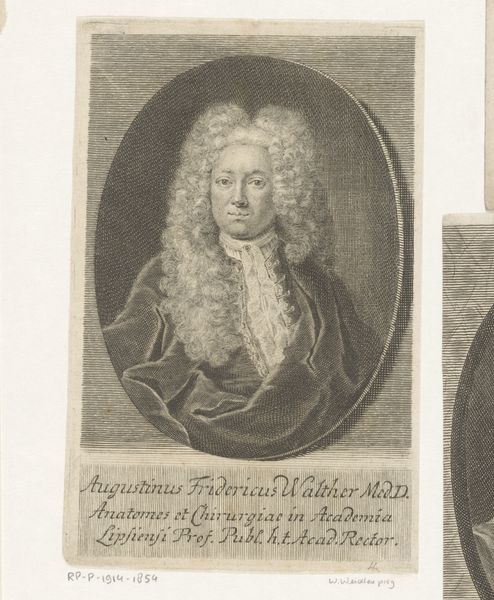 This is Martin Bernigeroth’s portrait of Constantine Phipps, etched in the early 18th century. The tightly controlled lines and shapes give definition to the composition in this intimate work. Notice how Phipps is framed within an oval, itself set against a rectangular backdrop. Bernigeroth's expert use of line and texture creates a visually arresting image. The contrasting horizontal and vertical lines create a visual tension, while the softness of Phipps' hair and clothing, created by intricate networks of fine lines, offset the angular frame. The interplay between line and form invites us to consider the hierarchical structures of representation. How does Bernigeroth use a symbolic language to define the role and status of the sitter? And how do these formal devices reinforce or perhaps subtly question established social and cultural norms? In this way, Bernigeroth uses line and form not just to depict an individual, but to engage with broader questions of identity and power.