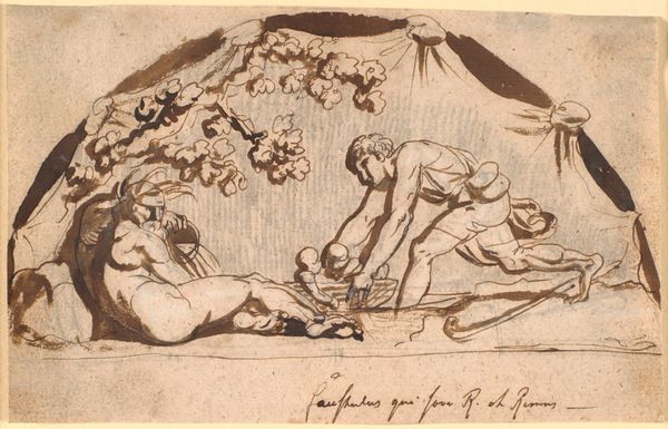 Nicolai Abildgaard made this drawing of Michael the Archangel wrestling with the Devil for Moses's body using pen and brown ink, with brown and grey wash. Abildgaard’s choice of these specific materials would have been deliberate. Pen and ink is a medium associated with the rapid development of ideas, and the use of brown and grey wash enhances the sense of depth and volume. But it is the very act of drawing, a process of adding lines and building up form, that gives the composition its energy and tension, evoking the intense struggle between the two figures. The artist’s skilled manipulation of materials, and the labor involved in the production process, have imbued the artwork with deeper cultural significance. It’s a potent reminder that artistic skill lies not only in the concept, but in the considered handling of the materials themselves.