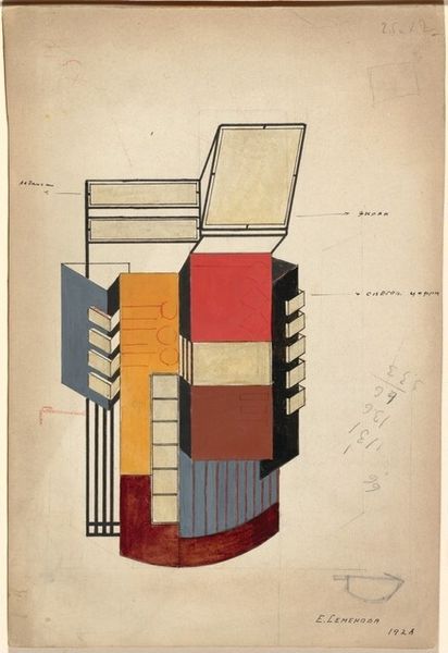 Editor: Here we have Wassily Kandinsky’s "Transmission," made in 1935, using ink and drawing on paper. It strikes me as a playful arrangement of geometric forms, almost like architectural blueprints, yet also slightly whimsical. What do you make of this work? Curator: It's fascinating to consider "Transmission" within its historical moment. 1935 was a period of increasing political tension in Europe, and Kandinsky, associated with the Bauhaus, saw his progressive artistic environment under threat from rising authoritarianism. Looking at these fragmented, almost diagrammatic forms, don't you sense a deliberate disruption of conventional representation? It's as if Kandinsky is dismantling the established visual order. Editor: I do see that. The way the shapes seem to overlap and intersect, refusing to create a coherent image, now reads to me like a visual metaphor for social and political fragmentation. Curator: Exactly. And note the title, "Transmission". It suggests a communication that's perhaps not clear, or is being intercepted, hinting that the act of conveying ideas itself becomes fraught, mediated by the surrounding environment. This resonates deeply with the political climate of the time, when free expression was under attack. How do you interpret its position within modernism? Editor: I now understand how this work departs from the utopian visions of early modernism, revealing a more uneasy perspective. Thank you. Curator: It's also made me reconsider the role of abstraction in times of political unrest, acting as both a form of resistance and an alternative way of engaging with reality.