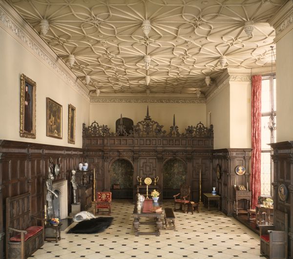 Editor: So this watercolor painting is titled *Interior of castleIn Renaissance Style* by Rudolf von Alt. It’s opulent! All the textures and the detailing of the wood… What do you see in this piece? Curator: Beyond the surface-level beauty, this work evokes questions about power, class, and representation. Look at how von Alt meticulously renders the interior, celebrating the lifestyle of the elite, whilst completely sidelining labor. Don't you think there’s something problematic about glorifying spaces built and maintained by those excluded from such privilege? Editor: I see what you mean. The intense detail does almost seem like an endorsement. Are you saying the artist had an agenda? Curator: Perhaps not a conscious one, but artists, like all of us, are shaped by their social context. Consider the historical narratives being visually constructed here. Is this a celebration of a particular historical period? What implications does that have? What message does idealizing the Renaissance send to its viewers regarding social hierarchies? Editor: It almost feels like it's saying things were better "back then". But were they, for everyone? I guess not. It makes me think about who gets to tell these stories and whose perspectives are included. Curator: Exactly! And by understanding those power dynamics, we can begin to have more critical and nuanced conversations about art. It is very valuable to question not only what is represented but, more importantly, how it is represented, and to what end. Editor: Wow, I will never see these period interiors in the same way. Thank you! Curator: My pleasure. Thinking about art as an active participant in these wider cultural dialogues is what makes it exciting.