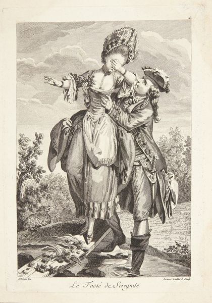 Louise Gaillard engraved this print, ‘Le Pardon Général,’ sometime in the late eighteenth century. It depicts a young man kneeling before a woman, begging forgiveness. Their elaborate dress, complete with towering wig, places them in the French aristocracy, a class of people whose status depended on elaborate rituals of social exchange and display. This was a society in which social standing was performed through appearance and etiquette. The garden setting here acts as a stage, where intimate encounters are always also displays of status. Note, too, the discarded hat and the abandoned game on the ground. These objects tell us of disruption, a momentary lapse in composure that requires this earnest act of contrition. As historians, we look at prints like this and see a record of social norms, a world of expectations and anxieties that shaped the lives of people in the past. By studying fashion, architecture, and even the rules of etiquette, we can better understand the social theatre in which these figures played their parts.