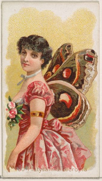 This card, "Parnassius Apollo," produced by Wm. S. Kimball & Co., presents a peculiar convergence of nature and allegory. Here, a woman is adorned with the wings of the Apollo butterfly, a symbol of transformation. Butterflies, throughout history, represent the soul, metamorphosis, and rebirth. The Greeks associated the butterfly with Psyche, the soul, often depicted with butterfly wings. Psyche's tale, filled with trials and transformation, is mirrored in the butterfly’s own life cycle, echoing a deep human desire for spiritual renewal. In this trade card, the butterfly wings serve not only as an emblem of beauty but also as a nod to classical ideals, mingling the scientific observation of the natural world with the rich tapestry of mythological meaning. The trade card, in turn, becomes a small portal, bridging ancient myth with modern commercial culture.