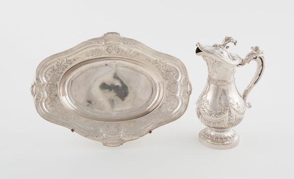 Editor: Here we have a silver butter dish created by Gorham Manufacturing Company in 1894. It strikes me as so elegant, almost otherworldly, and far more elaborate than what you'd expect for everyday use. What symbolic meaning could be embedded within a utilitarian object like this? Curator: It’s interesting you see that elegance. Silverware, particularly in the late 19th century, spoke volumes about social standing. Think about it – the material itself, silver, possesses a lunar quality, associated with purity, but also wealth. Does the pattern around the edge of the lid evoke anything to you? Editor: It looks almost classical, like something from ancient Greece or Rome, maybe? Curator: Exactly! Those are stylized anthemion motifs, which have their roots in ancient Egyptian and Greek art, symbolizing devotion and eternal life. By incorporating such a design onto something as commonplace as a butter dish, we see an aspiration toward timeless beauty, a link to admired civilizations of the past. Also, consider the monogram – that intertwining of initials signals ownership, but also belonging, perhaps a family dynasty. Editor: So it’s less about just holding butter and more about communicating a certain identity and values. It's a little like a crest or heraldry, visually asserting social status. Curator: Precisely! Utilitarian objects like this became powerful signifiers. Think of the rituals around dining and social gatherings. It was as much about presentation as it was about sustenance. These items visually reinforced their place in society through carefully selected symbols. Editor: I had never considered the psychological weight a butter dish might carry. It makes you wonder about the messages objects subtly convey even today! Curator: Indeed, reflecting on these past uses of cultural symbols and domestic objects really informs how we view and contextualize objects and their makers across cultures and through different time periods.