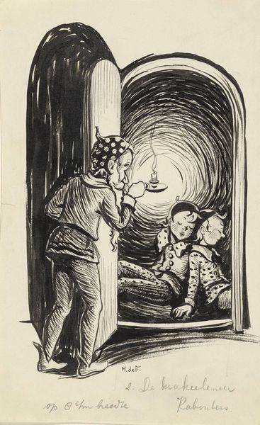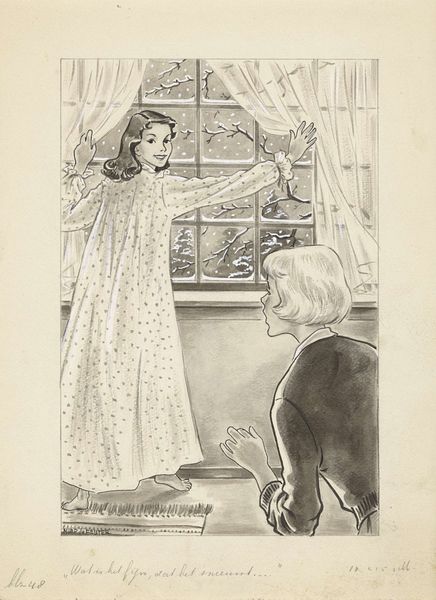 Miep de Feijter made this illustration using ink and watercolour. I love the way the thin lines and washes create such a lively, almost nervous energy. It’s like watching a story unfold in real-time. Look at how the ink defines the figures, especially the grandmother's dress; those dense, dark strokes give it weight and presence, while the lighter blue watercolor around the door feels almost ethereal. The water on the mat is so evocative, you can almost feel the dampness and the slight awkwardness of the moment. It’s not just about the image; it’s about capturing a feeling, a fleeting moment of human interaction. De Feijter's work reminds me a bit of Quentin Blake, with its whimsical, slightly off-kilter perspective. Both artists share a knack for finding the extraordinary in the everyday. It's a reminder that art is an ongoing conversation, a series of echoes and responses across time.