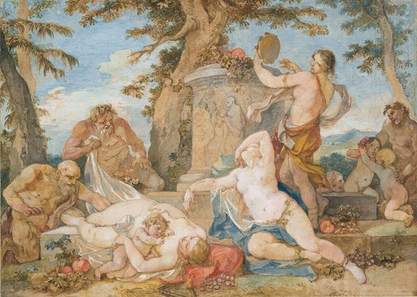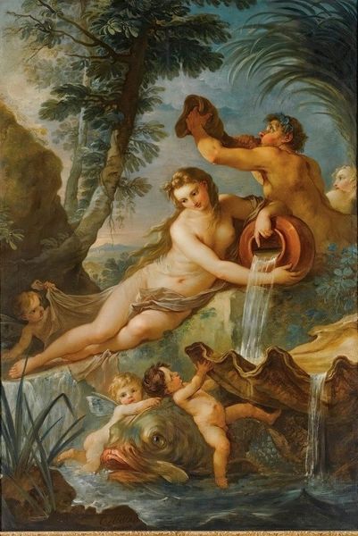Charles-Joseph Natoire created "The Rebuke of Adam and Eve" using oil paints, a traditional medium valued for its versatility and rich colors. The painting's smooth surfaces and vibrant hues speak to the artist's skillful manipulation of these materials. To achieve the final image, Natoire would have employed techniques such as layering and blending, carefully building up the forms and creating a sense of depth and volume. This labor-intensive process reflects the value placed on artistic skill during his time. The way Natoire models the figures in the painting, with their highly finished surfaces, is characteristic of the fine art of his era. It is worth noting that although this is a religious subject, Natoire uses his artistic skills to create a scene that reflects wider social issues of morality, authority, and judgment. The very act of rebuking Adam and Eve suggests a critique of human behavior and its consequences. Ultimately, "The Rebuke of Adam and Eve" prompts us to consider the interplay between artistic skill, material practices, and social context in shaping the meaning and significance of art.