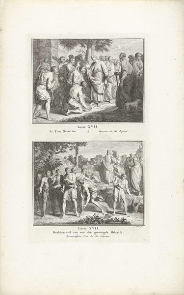 Jacob Folkema created this print, Verkondiging aan de herders en de aanbidding door de herders, sometime between 1692 and 1767 using engraving. An engraving is made by carefully cutting lines into a metal plate, applying ink, and then pressing paper against the plate to transfer the image. The visual effect of this work is dependent on the artist’s skilled manipulation of lines, a labor-intensive process. This printmaking method allowed for the relatively easy reproduction of images. In Folkema’s time, printed images circulated widely and cheaply, helping to spread ideas and stories to a broad audience. It is interesting to consider how the detailed engraving elevates biblical narrative for mass consumption, and how the making and distribution of this print reflects a growing commercial market for art. Ultimately, this artwork bridges the gap between craft production and wider social and cultural exchanges.