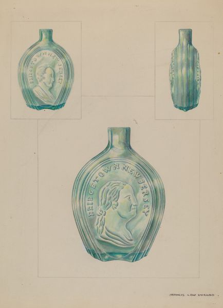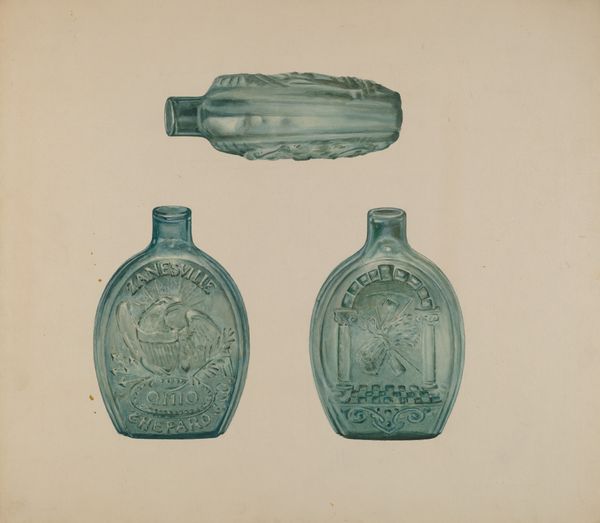 V.L. Vance made this watercolor drawing of a Washington Eagle Flask, but we don't know exactly when. The way Vance has depicted the flask, it feels almost like a memory, or an x-ray. You know, something that's there, but not really. The light blue wash is applied really thinly across the surface of the paper, it’s a very delicate tone. The marks that define the form of the flask have been drawn with purpose and confidence, but also kind of softly. It looks like Vance made this drawing quickly, not fussing too much about the details. I like the simple palette, it kind of mutes the patriotism of the imagery! There is a softness to the drawing that really helps to evoke the flask, but also keeps it at arms length, like an illusion. This reminds me of Giorgio Morandi’s paintings of bottles, where the shapes and forms are more important than the object itself.
