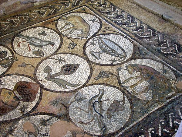 This section of the Beth Alfa Synagogue mosaic was created by Byzantine artisans using small pieces of colored stone and glass. The mosaic is an extraordinary example of the persistence and adaptation of ancient techniques. These materials weren't simply applied; they were meticulously arranged. Each tessera, or tile, was carefully selected for its color and size, then set into a bed of mortar. The overall effect is a shimmering surface where light plays across the varied textures and hues. The mosaic is not just an image, but a constructed reality, born from the labor of skilled hands. The process speaks to the value placed on patience and precision. The artists, working in a very specific cultural moment, created a piece that transcends its immediate function. It embodies not only a particular aesthetic but also a profound understanding of material potential. This approach challenges the hierarchy between art and craft.