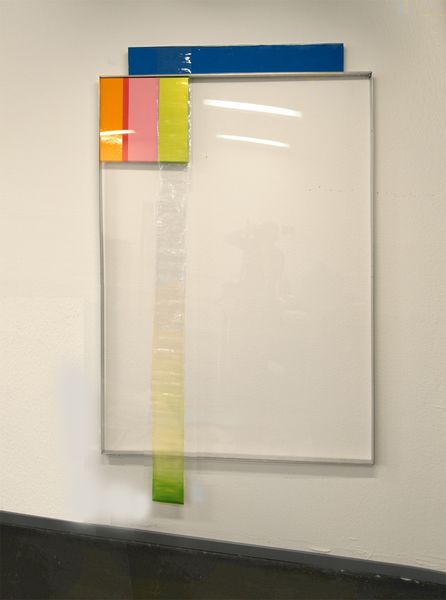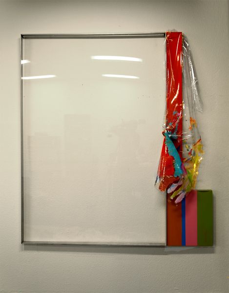 Here is Kaloust Guedel's striking "Painting #1" where the interplay of textures and forms destabilizes our understanding of what a painting can be. The smooth, reflective white rectangle dominates the composition, bordered by a cool, industrial frame. Above, a horizontal band of glossy, coloured rectangles offer a spectrum of hues that introduce a sense of coded language, each block a signifier within Guedel's artistic vocabulary. A translucent plastic sheet cascades down the left, partially obscuring the pristine surface. At the bottom, a chaotic spill of vibrant paint suggests a moment of entropy, challenging the minimalist intent of the white panel. Guedel plays with the structural integrity of the traditional canvas. Is the blank surface the painting, or is the discarded plastic and scattered paint equally significant? This intersection of order and disorder, transparency and opacity, challenges fixed meanings, inviting us to question the very nature of representation and artistic creation.