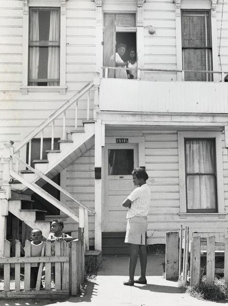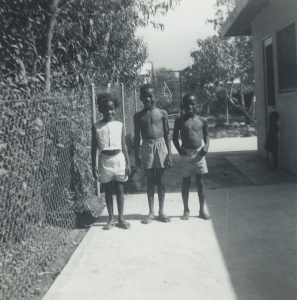 Editor: Here we have an untitled gelatin-silver print of two women holding children, circa 1950s. The photograph has such a strong sense of family, almost a staged snapshot of an ideal. What's your take on this image? Curator: This image resonates deeply within the socio-political context of the 1950s. What do you notice about how they’re positioned? The photograph speaks to the evolving role of women and the African American family structure during that era. Consider also the institutional aspect: how was the image framed and presented to an audience? Was it a commissioned portrait, a piece of documentary work, or something else entirely? Editor: That's interesting! I hadn't really considered its placement and circulation. The way they are standing, with the house as a backdrop, almost feels like they’re making a statement. Do you think that's intentional? Curator: Perhaps. Consider the politics of imagery, especially regarding African Americans in the 1950s. Positive portrayals were a form of resistance against dominant, often negative, stereotypes. How do you think the presentation of these families in a domestic space counters those narratives? Editor: So, the choice to show them in a domestic, almost celebratory setting normalizes their existence. It presents them in a way that challenges prejudiced views by simply portraying everyday life. Curator: Precisely. It uses the ordinary to fight against misrepresentation and marginalization, demonstrating resilience. Considering the Black Arts Movement slightly later on, the idea of photography as a tool to present self-defined narratives becomes much more evident, doesn't it? Editor: Absolutely. Thinking about this photo as a statement, a quiet act of resistance almost, shifts my perspective entirely. Thank you! Curator: My pleasure! Analyzing the function of photography as a historical, cultural object makes this artwork so meaningful, I think.
