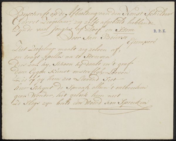 This is "Aantekening betreffende menselijke proporties," a script made by Jacob Willemsz. Delff II in the Netherlands sometime in the mid-17th century. The list describes an idealized standard of human beauty that was taking hold across Europe in this period. This was closely related to the rise of scientific rationalism in the Dutch Republic, which sought to understand the natural world through observation and calculation. It should be mentioned that the Dutch Golden Age was also a time of growing social stratification, as wealthy merchants and landowners sought to distinguish themselves from the lower classes. Manuals such as this helped to define the visual codes of social status. This kind of script may have been used in art academies, which were becoming increasingly important in shaping artistic taste. They codified the way artists were trained to see the human body, and therefore influenced the way art was produced and consumed. Understanding this image requires understanding its place within the social and institutional history of art. Looking at period textbooks and the records of art academies can tell us more about the public role of art at this time.