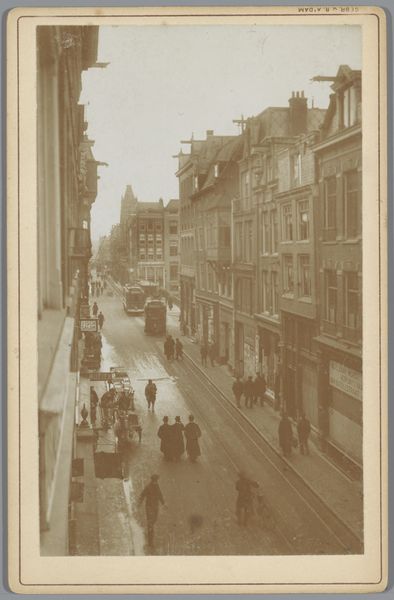 This sepia photograph by Friedrich Albert Schwartz captures a street view in Berlin's Friedrichstrasse. The perspective draws the eye down the long avenue, lined with grand buildings that demonstrate Berlin's rising status as a European capital. Produced in the late 19th century, this image offers insight into the cultural aspirations of the newly unified German Empire. The architecture evokes a sense of order, wealth, and progress, reflecting the era's belief in industrial and urban advancement. The street teems with people and horse-drawn trams, signs of a modern city geared towards economic growth. Photographs such as this, commissioned by city authorities or businesses, acted as promotional tools. They encouraged investment and immigration while projecting an image of imperial power. Understanding the photograph means delving into the urban planning documents and economic data of the time, alongside analyses of German nationalism and cultural history. The image becomes a rich source of information when we examine it in its historical context.