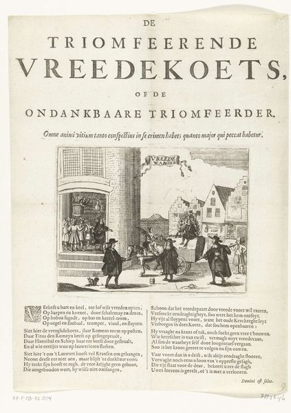 Curator: We're looking at "Vreugdevuren te Den Haag na de verovering van Namen, 1695" an engraving from 1695 by Pieter van den Berge. It depicts a celebration in The Hague following the capture of Namur. Editor: It strikes me as chaotically celebratory, like fireworks exploding mid-battle. The perspective's unusual, almost bird's-eye, emphasizing the dense urban setting contrasted with the dazzling spectacle of light and smoke. Curator: The engraving’s attention to detail speaks to the formal qualities of the Baroque period, using very refined lines to construct a sense of grandeur and complexity from a scene depicting, essentially, fireworks. Editor: Yes, and contextualizing this, Namur's capture represented a major victory in the Nine Years' War for William of Orange, soon to be King William III of England. These "joy fires" were a political display celebrating Dutch power but also reinforcing the monarchy. Curator: Indeed. Van den Berge's piece captures the symbolism, positioning the fireworks displays as triumphs of organization, science, and national identity under the baroque framework. It's not just uncontrolled joy, but rather civic pride turned visual allegory. Editor: Right, you see that order and precision contrasted with the historical backdrop—the devastating wars in Europe in this period. I consider it a reflection of social hierarchies too. Look at how detached the throngs of people appear below versus the elite, observing the spectacles on an elevated dias, as well as how text below honors those wealthy people. Curator: Well, if we look at Van den Berge's manipulation of line and depth, one could also propose that it echoes those hierarchies within the structures that mirror class. This structured chaos works to convey an era of enormous political, scientific, and even artistic development in a highly ornamental period of art history. Editor: Perhaps, but understanding that celebration meant different things to different classes gives us a more critical lens of its meanings today. Ultimately, it highlights a moment of nationalistic fervor during a fraught era, reproduced as an engraving that sought to distribute the state’s message further. Curator: A compelling interpretation and just looking closely now, what a spectacular rendering of pyrotechnics on paper from so long ago.