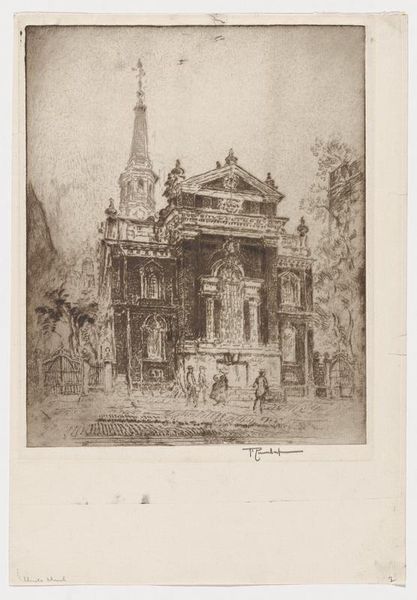 Curator: We’re looking at Edmond Bacot's "Abside de Saint-Pierre, Caen," taken between 1852 and 1854. It's currently housed here at The Met. Editor: What strikes me immediately is the incredible detail—it's a photograph, but the texture and architectural elements seem almost hyperreal. There’s also a certain melancholy feel, despite the grandeur. Curator: It’s an albumen print, which allowed for that astonishing clarity. The choice of subject, the apse, is deliberate, focusing on the most ornate, structurally complex part of the church. Look at how the light plays on the stonework, emphasizing its volume. Editor: Exactly. And that play of light reveals something of the labour involved. Each carved stone, each window… it’s the accumulated effort of many hands. How was this type of material treated by its workers? Curator: In photographic terms, this would have been a laborious process too. Glass plate negatives required immense patience, coating, exposing, and developing each one meticulously, with materials that were extremely precious at the time. There are so many different hands involved from beginning to end of the creative process. Editor: It also makes me think about the church's role as a major employer—commissions would have sustained entire families of stonemasons, glaziers, and other artisans. But it raises questions, as these architectural projects historically benefit the patrons disproportionately to the exploited workers. Curator: This intersection of the physical space and its inhabitants introduces questions around the photograph as a visual text: it showcases Romanesque architectural forms but also silently presents sociological narratives. Editor: Yes, the social fabric interwoven into the building. And beyond, of course, there were all the processes to gather the resources needed for construction. It forces me to look beyond aesthetic values to assess the whole environment surrounding the historical photograph itself. Curator: A pertinent point, forcing a deeper contextual understanding beyond initial aesthetic admiration. The formal organization, its perspective and play with light, encourages an appreciation for composition while silently presenting an awareness to the construction, process, labour and consumption behind the aesthetic of architecture and the photograph itself. Editor: It becomes a dialogue—between form and context. Thank you.