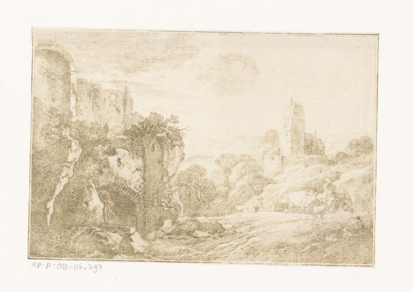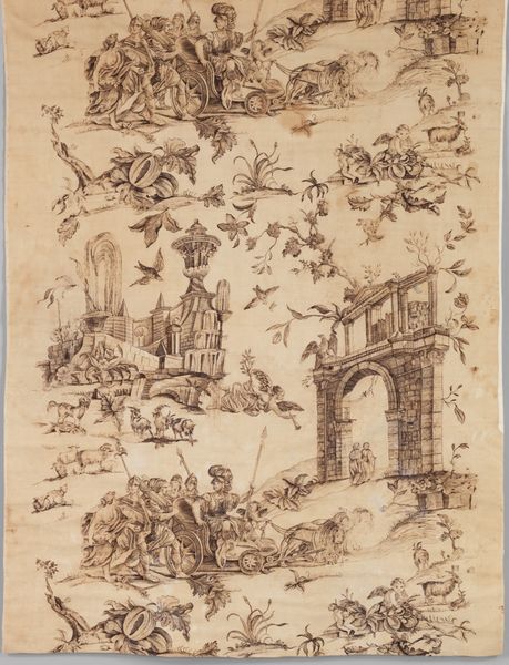 Maarten van Heemskerck created this drawing, "An Allegory on the Force of Faith," with pen and brown ink. The sketch presents a vision of faith triumphing over worldly destruction. Made in the Netherlands, likely during the mid-16th century, a time of significant religious upheaval with the rise of Protestantism and the Catholic Counter-Reformation, Heemskerck's work reflects these tensions. The ruined architecture suggests a world collapsing without faith, while the allegorical figures embody the power and resilience of religious belief. The detailed rendering of classical motifs blends Christian themes with Renaissance humanism, a style favored by the artist that underscores the cultural context. Art historians can further understand the work by researching period religious debates, the artist’s patronage, and the iconography of faith. By understanding the social and institutional context, we appreciate how art engages with the pressing questions of its time.