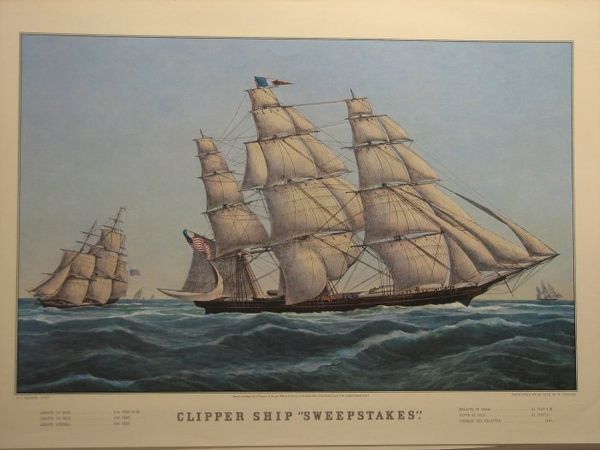 Currier and Ives created this print of the Clipper Ship 'Dreadnought' at a time when the United States was deeply engaged in maritime commerce and expansion. This image captures the spirit of ambition and technological advancement of the era. The 'Dreadnought', with its billowing sails and sleek design, was celebrated for its speed. But consider for a moment the human element, and labor, required to propel such a vessel across vast oceans. The sailors, often from diverse backgrounds, faced peril, hardship, and strict hierarchies aboard. Their stories, often overlooked, form an essential part of this ship’s history. Clipper ships facilitated the rapid transport of goods, including those produced by enslaved labor, thus deeply intertwining maritime trade with the economics of slavery. Looking at this print, one can reflect on the complex relationships between progress, exploitation, and the human cost of ambition.