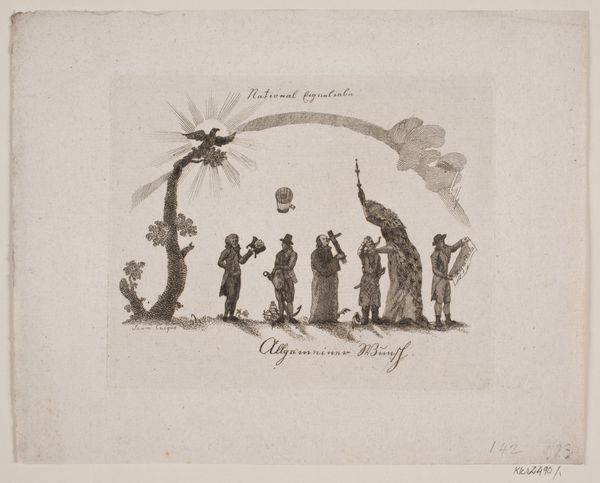 Editor: Here we have John Flaxman's "The Region of the Sun," a delicate drawing. It's interesting how the figures are nestled within these star-like forms. What do you make of this imagery? Curator: The radiating stars evoke a sense of divine light and celestial harmony, common in Neoplatonic thought. Consider how light, as a symbol, represents knowledge and spiritual awakening in many cultures. Do you see how the figures are almost enveloped? Editor: Yes, they seem protected, or perhaps transformed, by the stars' presence. It's like they're being absorbed into this radiant realm. Curator: Flaxman is connecting the human form to the cosmos, echoing ancient beliefs about the interconnectedness of all things. These images carry emotional and cultural memory. The stars aren't just decoration; they are fundamental to understanding the journey within. Editor: I see that now. It is far more than just an illustration. Curator: Precisely! Flaxman invites us to contemplate our place within this grand, illuminated design.