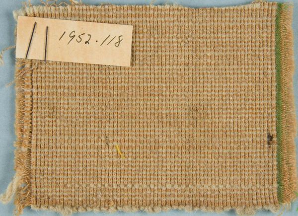 Editor: Here we have Otti Berger's textile sample, Curvo Pattern Upholstery Fabric. It’s striking how such a small fragment evokes such a sense of texture and warmth. What symbols or cultural echoes resonate with you when you view this piece? Curator: The repetitive weave speaks to the comfort and durability sought in domestic spaces, but also whispers of the industrial processes transforming daily life. Do you see the subtle shifts in color? It disrupts the uniformity. Editor: Yes, there are slight shifts, how does that disrupt uniformity? Curator: Those variations acknowledge the human hand, the imperfect, embedded within mechanization. It’s a quiet resistance, a reminder of individuality within mass production. Editor: I see what you mean. I hadn’t considered the contrast between industry and individuality before. Curator: Textile patterns have often served as codes, communicating status, origin, or belief. This "Curvo" could signal a leaning towards functionalism but it also might suggest subtle personal expression. Editor: That gives me a lot to think about regarding the purpose and impact of design. Curator: Indeed. It invites us to unravel the stories woven into even the simplest objects.
